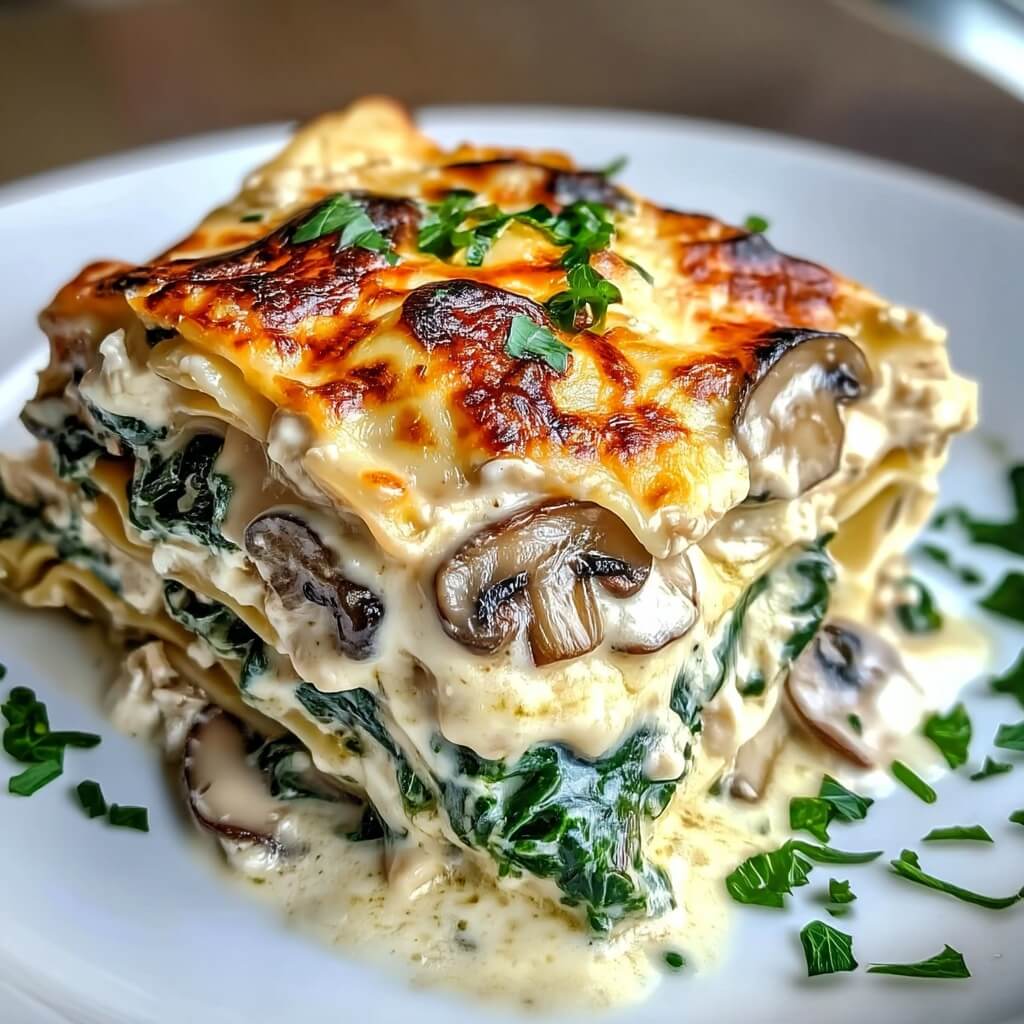 If you love lasagna but don’t always want the heaviness of a red sauce and meat layers, this creamy spinach and mushroom lasagna is the answer. It’s rich without feeling…