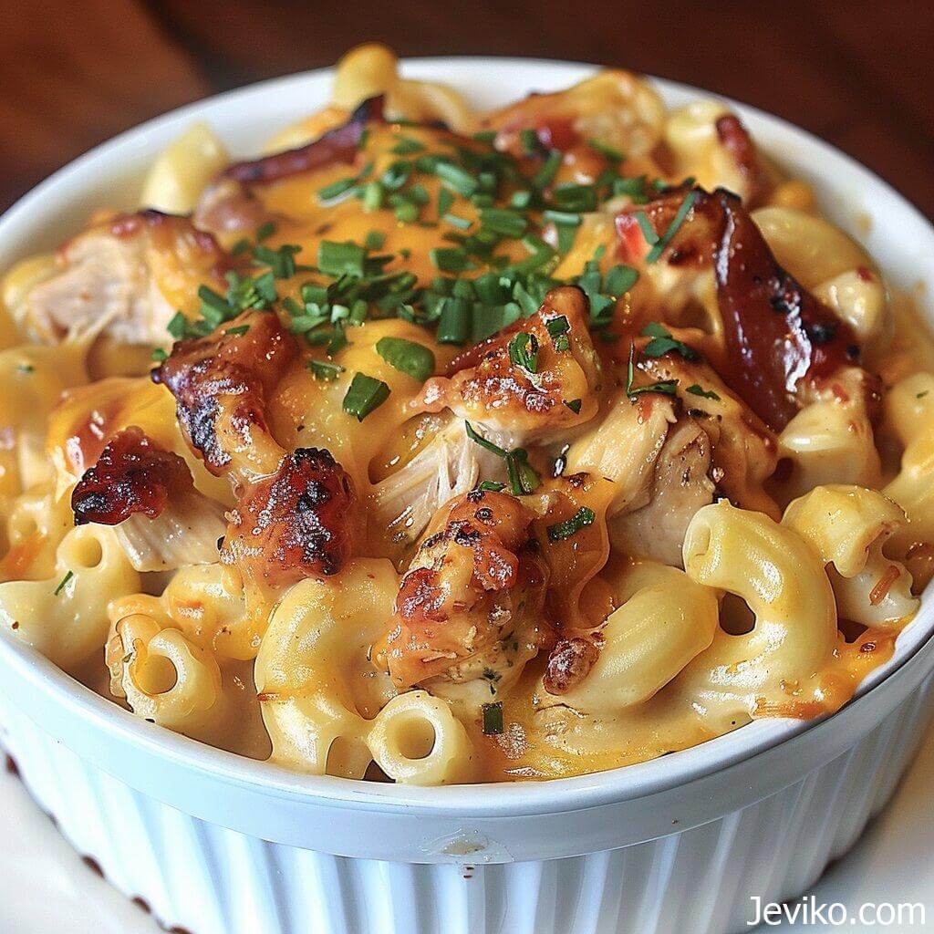 Yep, you read that right – today I’ll be guiding you step-by-step through how to make my famous Barbecue Chicken Mac and Cheese. It all started on a hot summer night much like this one when I had a major hankering for some down-home comfort food. I wanted melty, nostalgic mac and cheese but also craved juicy barbecue chicken fresh off the grill. And then it hit me harder than the summer heat – why not combine the two? Before I knew it, I was tossing chicken, macaroni and barbecue sauce into a hot skillet, eager to see if my flavor fantasy would pay off. Oh boy, did it ever! One bubbly, golden-brown straight-from-the-oven bite and I knew this creation was destined for cookout greatness. Sweet smoky barbecue sauce blanketing tender chicken and elbow macaroni, all topped with a crispy layer of panko breadcrumbs and cheddar cheese. It was love at first cheesy, saucy bite!