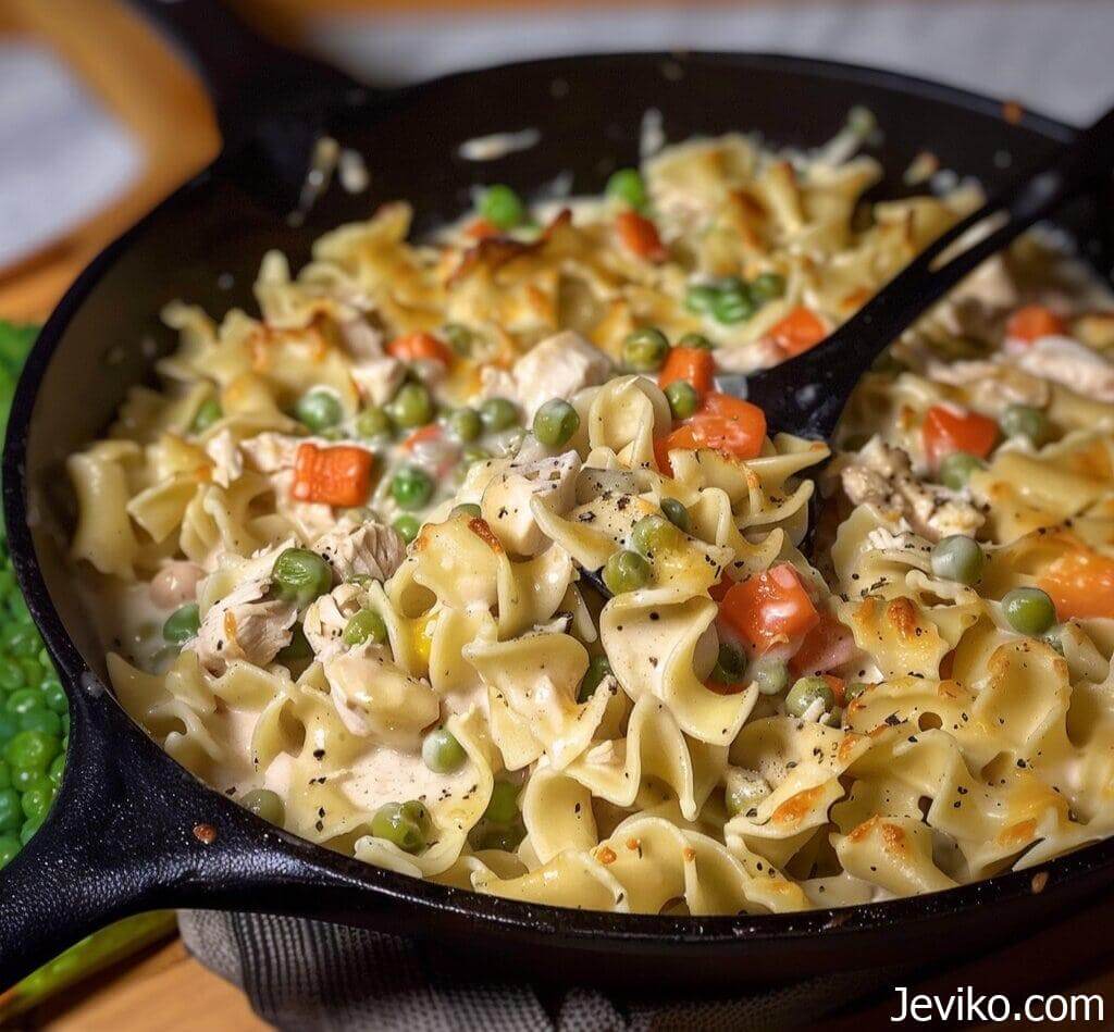 This comforting one-skillet chicken pot pie pasta is guaranteed to become a new family favorite. Loaded with tender chicken, carrots, peas, and corn simmered in a creamy, herb-infused sauce all tossed with egg noodles. It’s got everything you love about chicken pot pie, transformed into a quicker, easier, but equally delicious stovetop meal. I provide tips for using chicken thighs for more flavor, adapting to gluten-free, cooking the noodles properly al dente, getting the perfect thick and velvety sauce, and even prepping components in advance for an easy bake-off dish. This feel-good skillet dinner comes together in under 30 minutes but tastes like you simmered it for hours. Comfort food just got a whole lot easier thanks to this brilliant chicken pot pie pasta hack. Grab a crusty loaf for dunking and get ready to enjoy a new twist on an American classic.