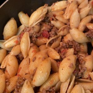 - For adults: Mix the remaining noodles, beef, and 1/2 cups of cheddar cheese together in the warm skillet.