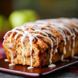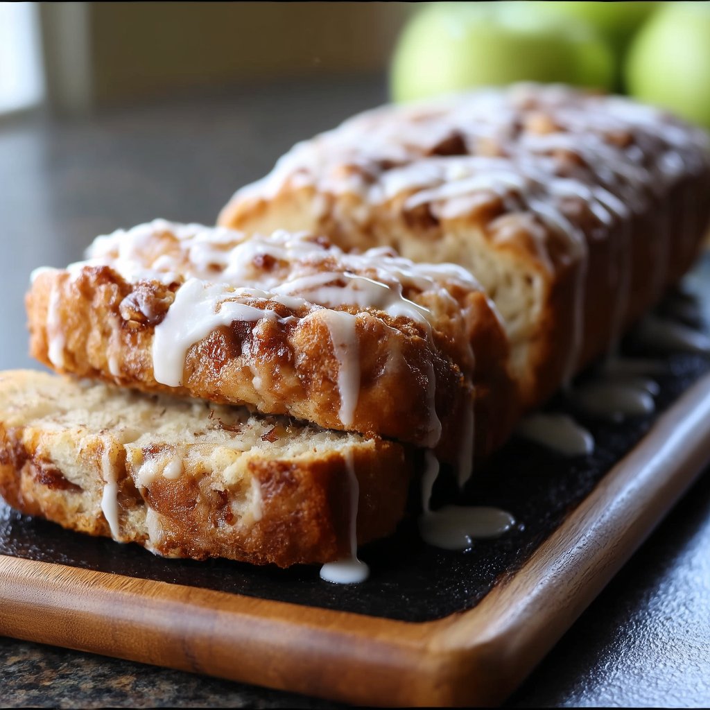 The first time you pull it from the oven, the whole loaf looks a little rustic. That’s part of the charm. You’ll see ribbons of cinnamon running through the center and pockets of apples tucked in every slice. Give it ten minutes to cool, then drizzle the glaze while the loaf is still slightly warm. The glaze sinks into the top just enough to turn shiny and crackly, like a bakery treat.