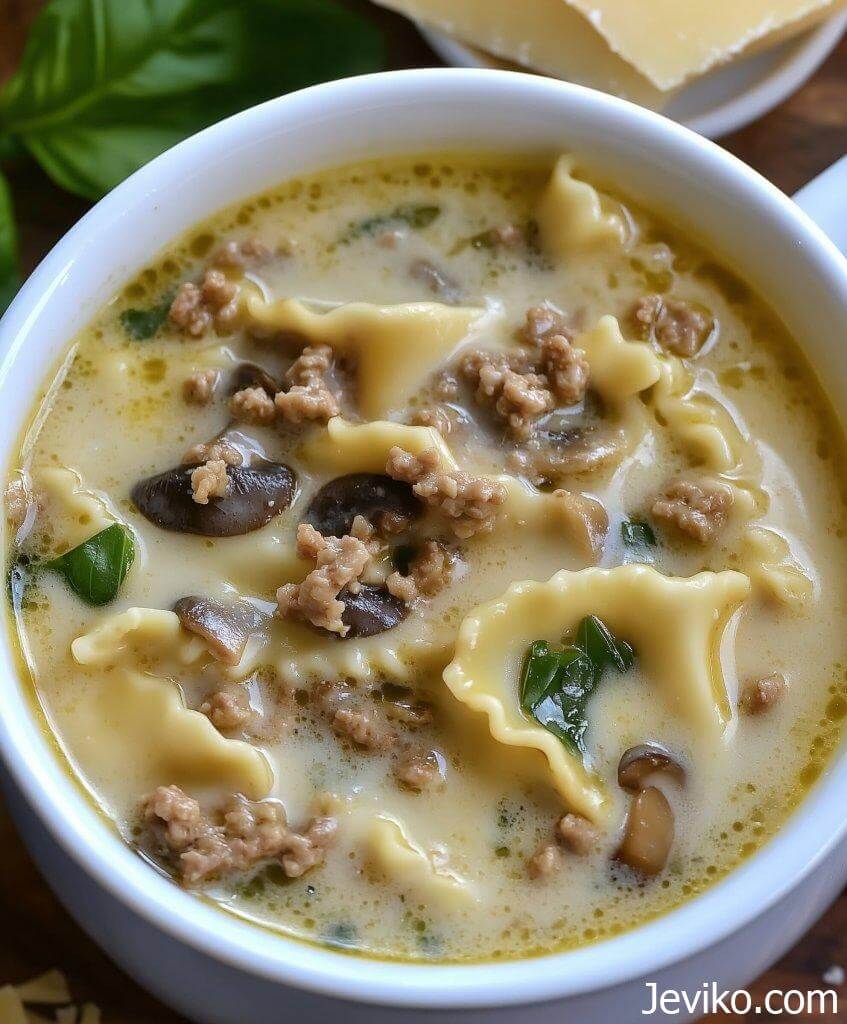 Picture this: all the flavors of your favorite lasagna, transformed into a rich, creamy soup that’s WAY easier to make. It’s like a warm hug in a bowl, with tender pasta, Italian sausage, and a velvety Alfredo sauce that’ll make you want to lick the bowl clean (no judgment here – I’ve totally done it! 😉).
