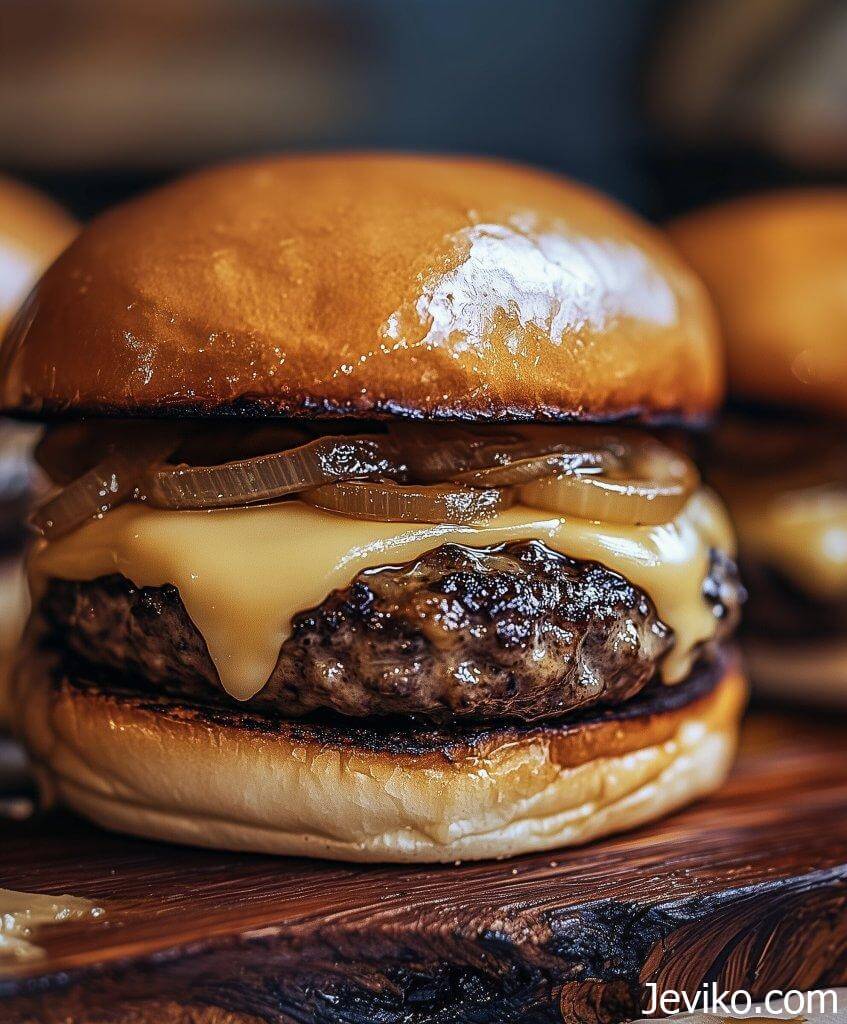 Store any leftover caramelized onions in an airtight container for up to 3 days. For the best experience, serve these burgers immediately while the cheese is melty and the buns are warm. They pair beautifully with: