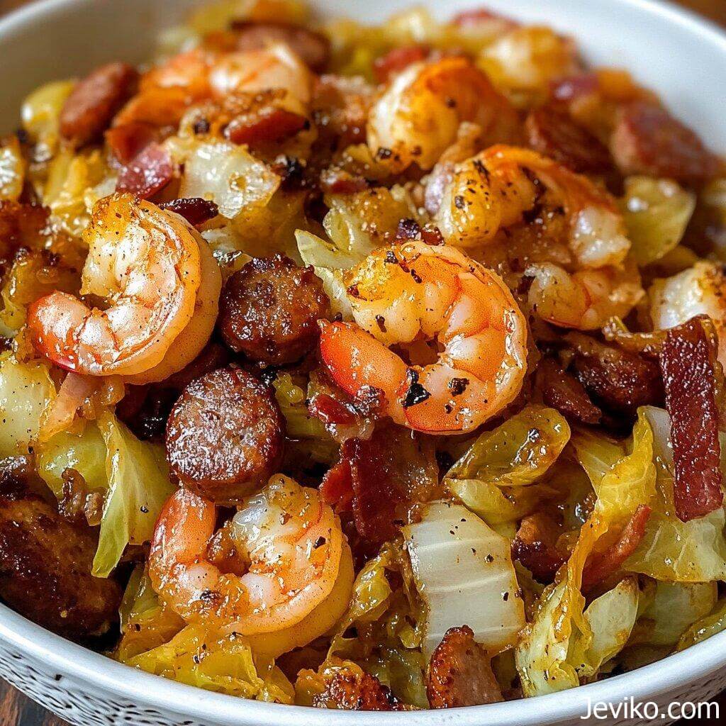 Hey there, kitchen adventurers! Welcome back to Life with Jeviko, where we transform simple ingredients into meals that taste like a warm hug from the South. Today, we’re diving into a dish that’s equal parts comfort and excitement: Fried Cabbage with Shrimp, Sausage & Bacon. Imagine smoky, salty, and savory flavors colliding with crisp-tender cabbage in a skillet that’s practically singing with joy. This isn’t just dinner—it’s a celebration of textures and tastes, all cooked in one pan for maximum flavor and minimal cleanup.