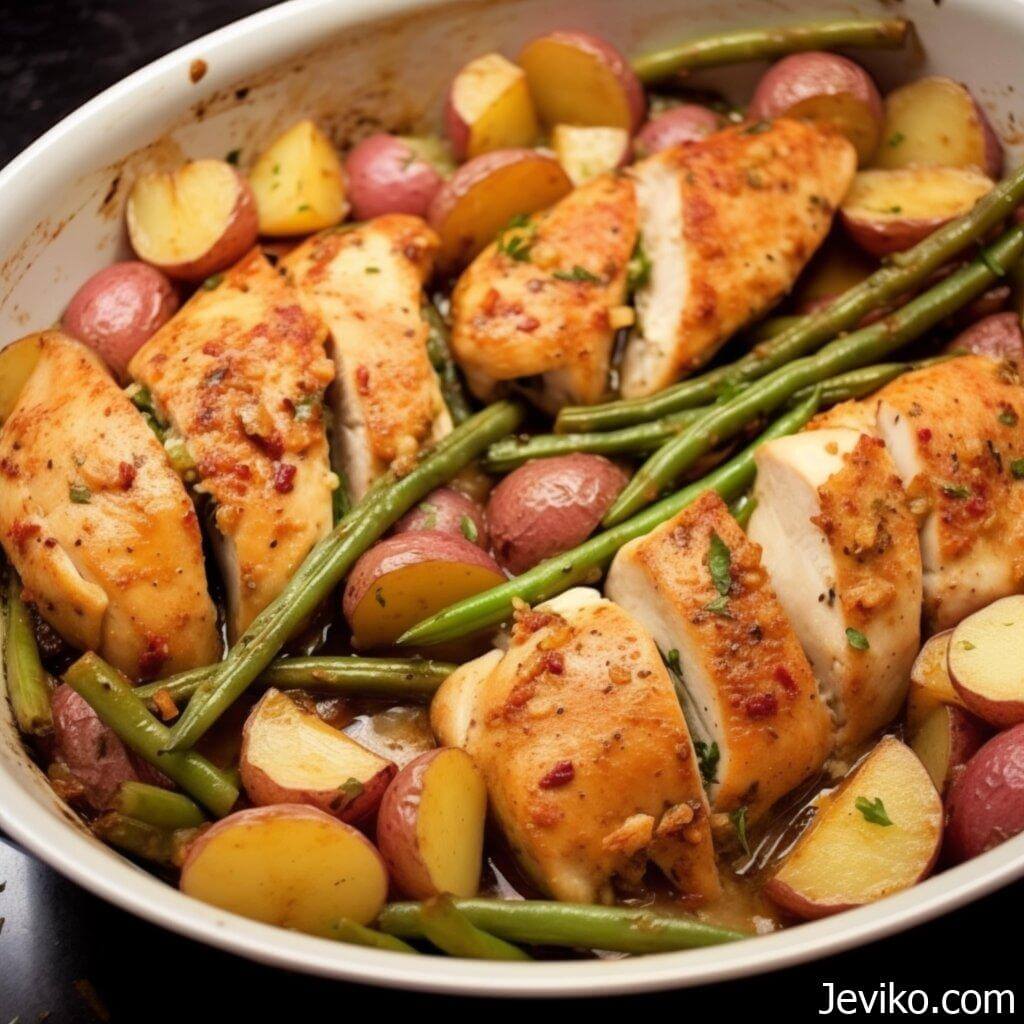 - Prep ingredients first – wash chicken, trim beans, cut potatoes, mince garlic, zest/juice lemon.
