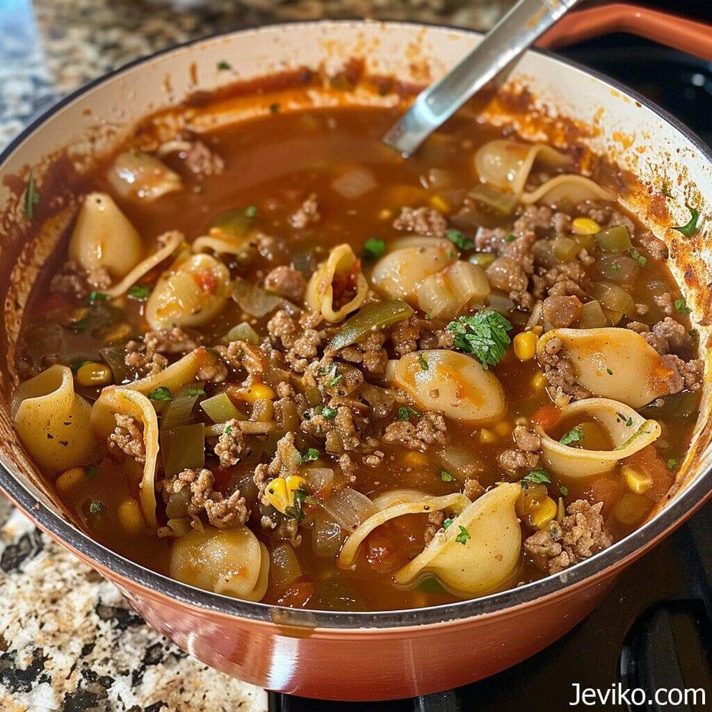 I hear you – whipping up a nourishing, from-scratch supper can seem downright implausible on a rushed worknight. As a parent constantly wrangling homework, activities, and bedtimes, I’m all too acquainted with the weeknight time crunch. But I’ve discovered this swift ground beef conchita soup is an absolute godsend for putting heartening, homemade fare on the table sans the fuss. In merely half an hour, you can stir up a pot brimming with all the comforting flavors and textures a busy household craves. Unlike tedious recipes that demand hours of simmering, this streamlined one-pot wonder maximizes convenience without sacrificing a morsel of gratification. From the fun little pasta shells to the protein-packed beef and potatoes, each rejuvenating bite overflows with simple goodness. So next time the clock seems to be outpacing you, take heart – this stress-free soup proves even the busiest families can gather around the table for a cozy, home-cooked meal.