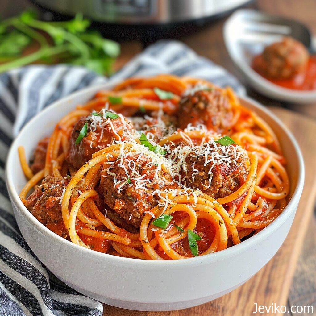 - For a touch sprinkle some Parmesan cheese and fresh parsley on top according to your taste preference.Indulge, in this comforting meal while relishing the scent of a flavorful tomato sauce and perfectly crafted meatballs.