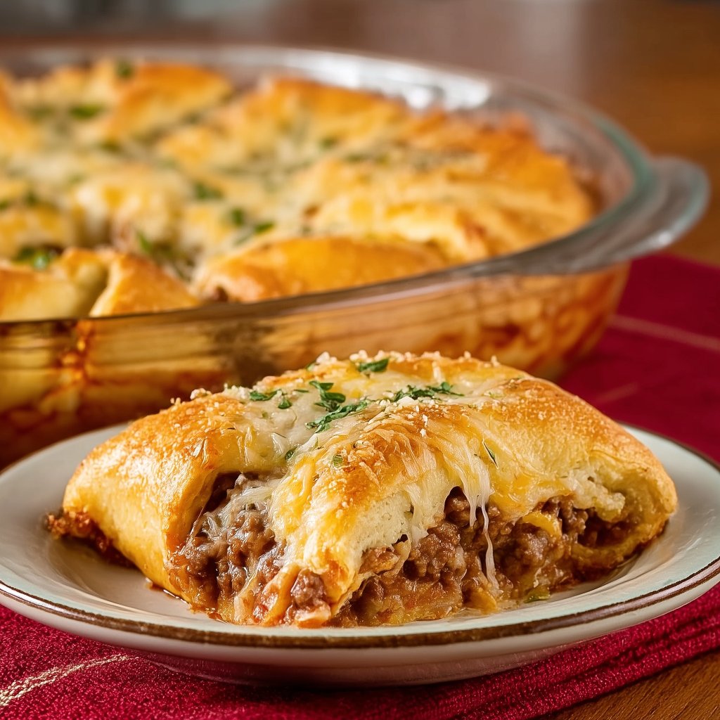 The crescent dough bakes into a tender crust with just enough structure to scoop clean slices. The filling turns rich and saucy without being watery. And because the cheese goes on top, you get that browned, stretchy finish that makes everyone hover around the pan.