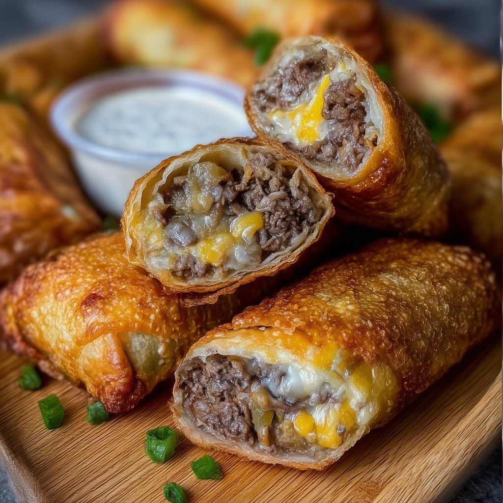 Cheesesteak egg rolls with ground beef