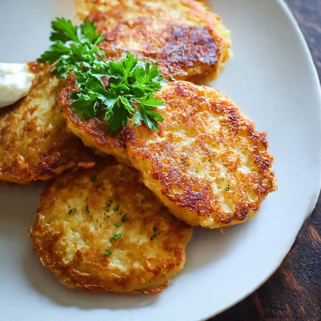 They’re close cousins. The technique overlaps: grated potatoes, onion, binder, fried until crisp. Latkes often lean into certain traditions and specific ratios depending on the style. This recipe lands in that classic, crispy, familiar zone with a sturdy texture and a tender center.