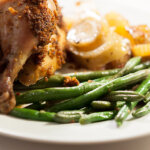 The beauty of this recipe is that everything is cooked in a skillet, so there is very little washing up afterward, unlike a traditional roast dinner. You’ll need a large baking pan to fit it all in!