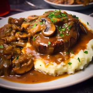 - Serve: Spoon mashed potatoes onto plates, add Salisbury steak, and ladle mushroom gravy over top.