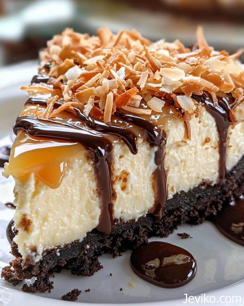 - Every bite is a symphony—buttery graham crust, rich cheesecake, gooey caramel, crunchy coconut, silky chocolate. It’s a textural love story.