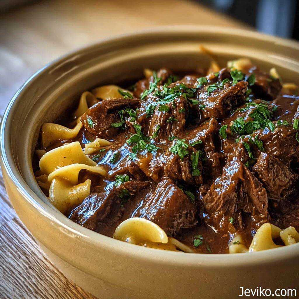 The beauty of chuck roast is how it transforms in the slow cooker. What starts as a tough, somewhat intimidating piece of meat becomes this incredibly tender, fall-apart beef that just melts in your mouth. And when you combine that with perfectly cooked egg noodles and a rich, savory gravy, you’ve got yourself a meal that feels like a warm hug on a plate.
