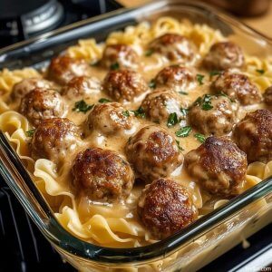 This version is built for real life. It doesn’t ask you to hunt down hard-to-find ingredients, and it doesn’t rely on shortcuts that flatten the flavor. The meatballs stay soft and juicy thanks to a simple breadcrumb-and-milk mixture. The gravy comes together in the same pan you brown the meatballs in, so you keep every bit of flavor. And the seasoning stays true to what people expect—black pepper, a hint of nutmeg, a whisper of allspice, and a creamy finish that clings to each noodle.