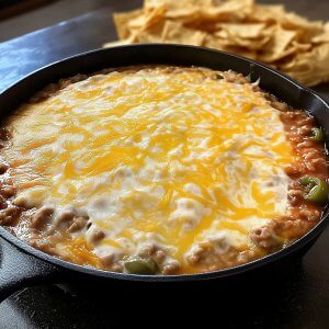 - Rest 5 minutes, add toppings, and serve warm with sturdy tortilla chips.