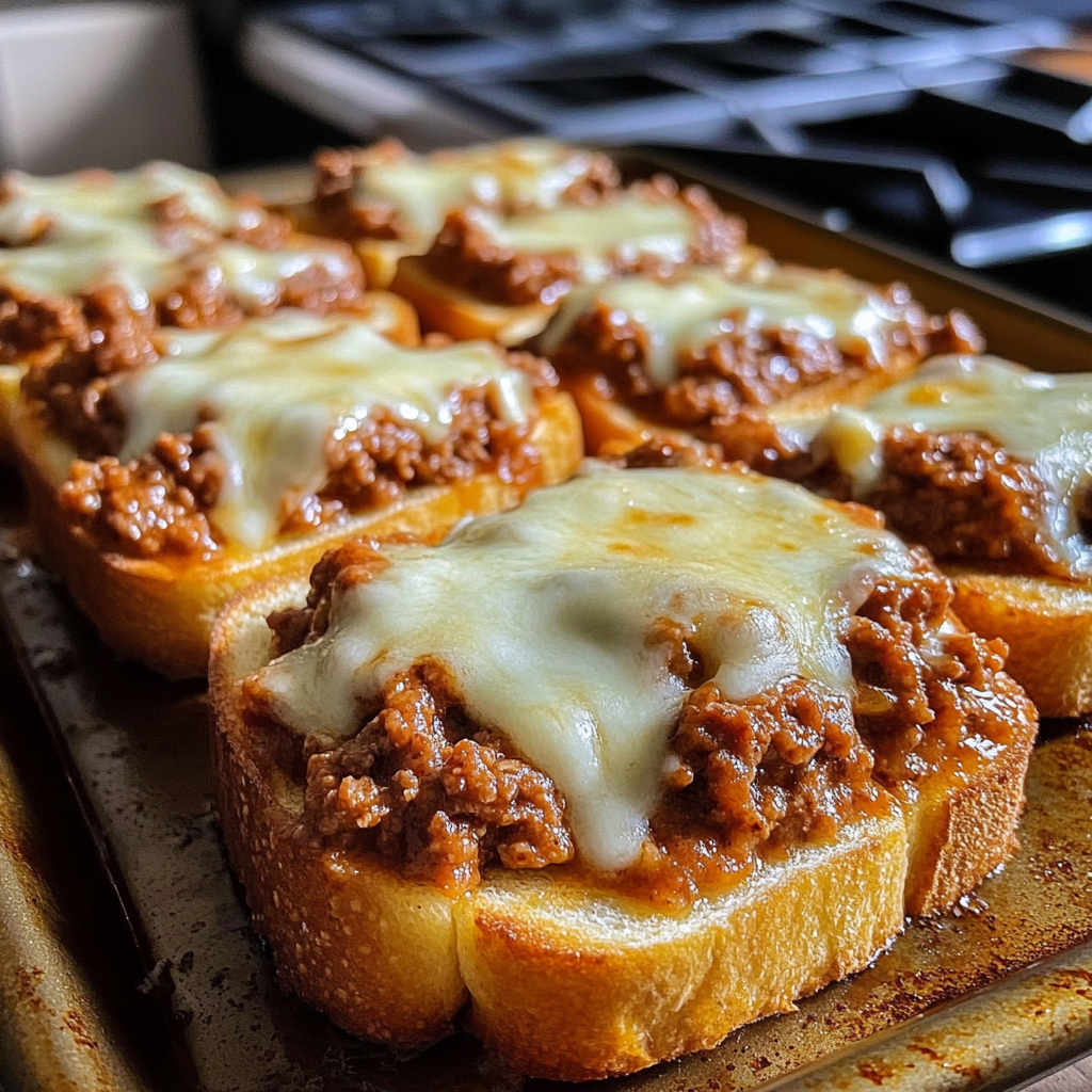 - Assemble: Spoon sloppy joe mixture onto toast, top with cheese.